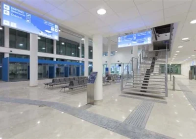 Le opere che seguono fanno parte dei lavori che l’impresa ha eseguito per conto dell’Ente Nazionale per l’aviazione civile e riguardano la realizzazione della nuova aerostazione ricostruzione passeggeri, impianti di urbanizzazione e parcheggio auto – piazzale di sosta aeromobili, risanamento e riconversione infrastrutture air-side nell’Aeroporto di Lampedusa.