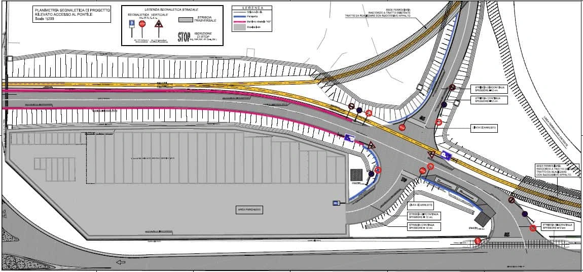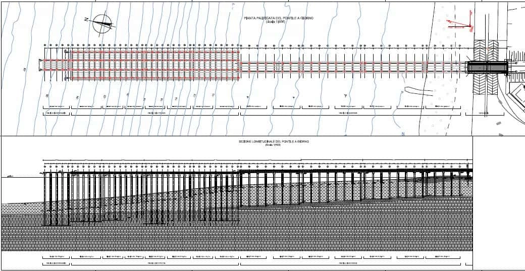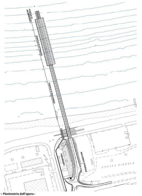 Il pontile sarà predisposto per la percorrenza dei mezzi su gomma e su binari.