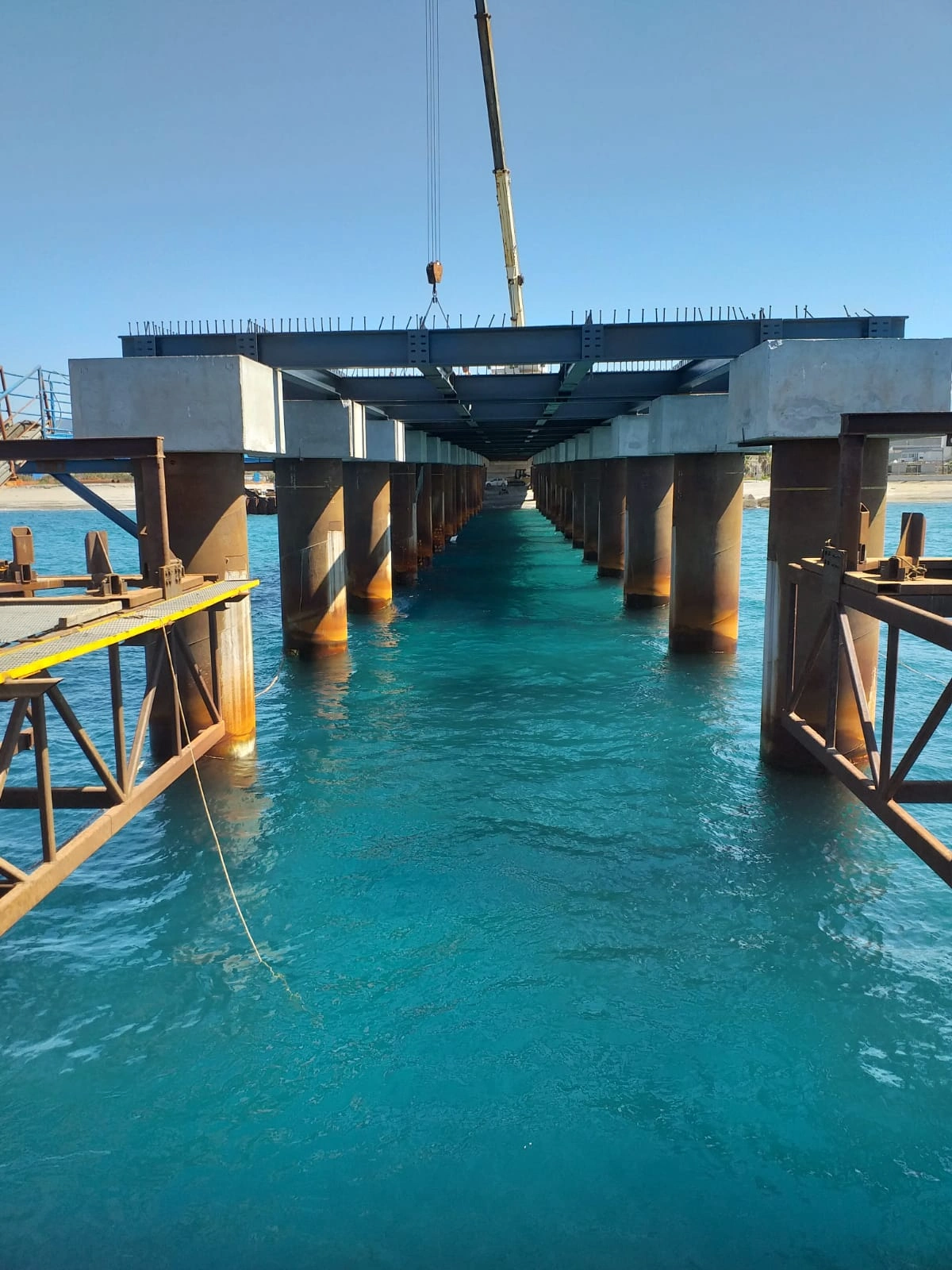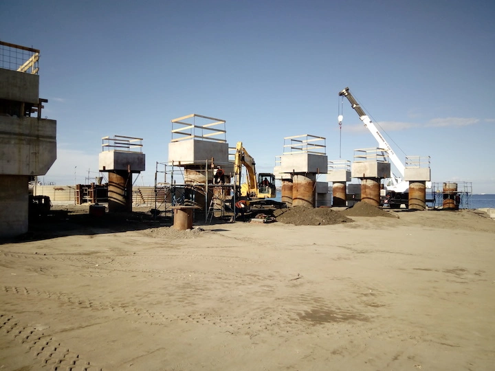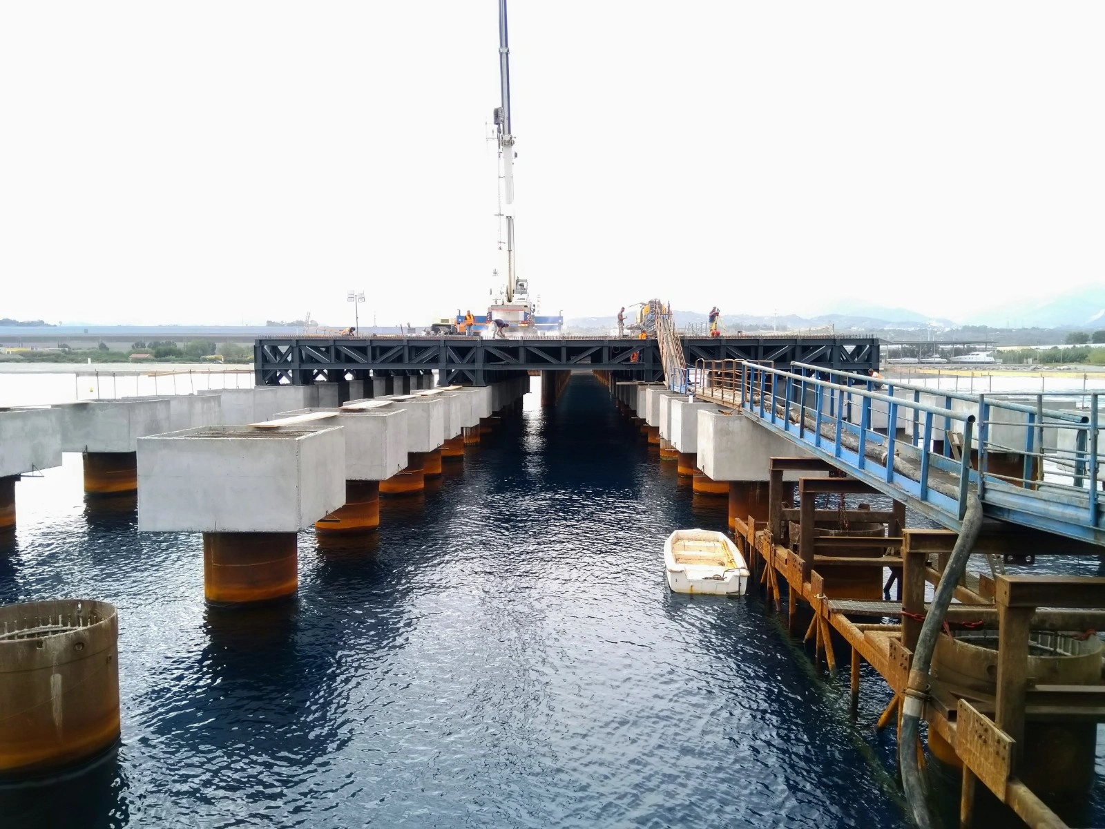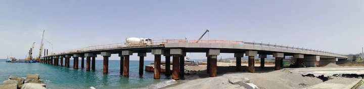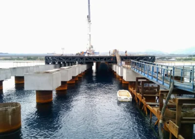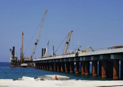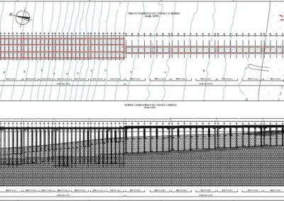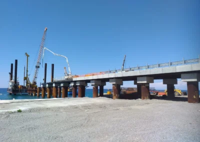 Realizzazione del Pontile di Raccordo a partire dal cavalcavia su Strada Industriale, per uno sviluppo di 248.60 m, avente larghezza pari a 13.00 m e fondato su n. 2 file di pali φ 1500 ad interasse di 9.00 m, sia in senso trasversale che longitudinale, e profondità progressiva variabile tra i 25 e 35 m. Sarà costituito da n.4 corpi giuntati di cui il primo corpo lato terra ha lunghezza di 47.00 m, mentre i rimanenti tre corpi avranno lunghezza di 67.20 m.°