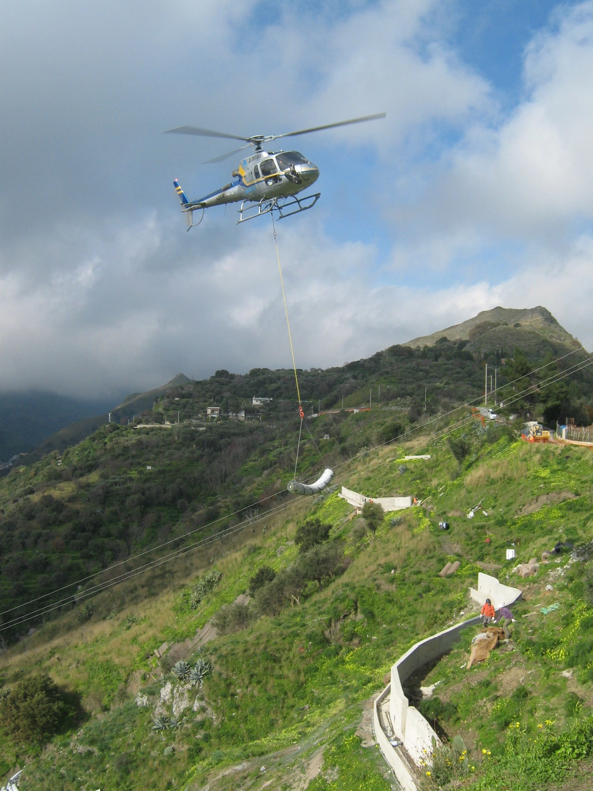 Le opere che seguono fanno parte dei lavori che l’impresa ha eseguito per conto del Genio Civile di Messina, e riguardano l’intervento di somma urgenza per la messa in sicurezza dei versanti del Villaggio Giampilieri Superiore zona Vallone Chiesa del Comune di Messina. (Importo Lavori Euro 4.091.524,75). I lavori eseguiti riguardano la messa in sicurezza dei versanti mediante la realizzazione di sistemi di raccolta ed allontanamento delle acque meteoriche; sistemi di rafforzamento corticale dei versanti con la collocazione di teli di acciaio ad alta resistenza e reti a doppia torsione rinforzate con funi di acciaio; sistemi frangi colate, briglie selettive e barriere elastiche paradetriti lungo le incisioni; ripristino vegetativo delle aree.