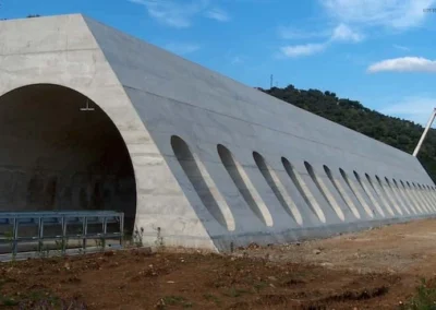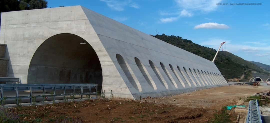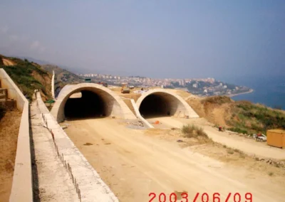 Le opere che seguono fanno parte dei lavori che l’Impresa ha eseguito per la realizzazione del completamento del Lotto 26 Bis “Canneto” dell’Autostrada Messina-Palermo (Importo Lavori euro 34.318.206,66). Il tratto di Autostrada in argomento ha uno sviluppo in lunghezza di mt. 1989,21 sulla pista per Palermo , e di mt.1992,60 sulla pista per Messina; le carreggiate stradali sono a tre corsie per ogni senso di marcia , ed hanno una larghezza di mt. 9,00. Le principali opere realizzate sono costituite : sulla pista per Messina dalla Galleria Artificiale “Serra Acuta” della lunghezza di mt. 154,18 , dalla Galleria Finestrata “Gammimari” della lunghezza di mt.361,18 , dalla Galleria Artificiale “S.Venere” della lunghezza di mt.127,48 , dalla Galleria Artificiale “Contura” della lunghezza di mt.222,01 , dal Viadotto “Canneto” , anch’esso con impalcato a conci , della lunghezza di mt.369,96 e dalla Galleria Artificiale Finestrata della lunghezza di mt.100,00 , oltre a Paratie rivestite in pietra. Sulla pista per Palermo dalla Galleria Artificiale Finestrata “Serra Acuta” della lunghezza di mt.360,83, dalla Galleria Artificiale “S.Venere” della lunghezza di mt. 111,57, dalla Galleria Artificiale “Contura” della lunghezza di mt.204,00 , dal Viadotto “Canneto” , anch’esso con impalcato a conci , della lunghezza di mt. 410,68, oltre a Paratie rivestite in pietra.