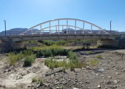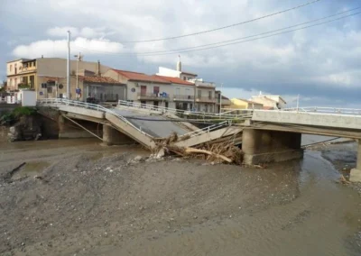 A completamento dell’intervento sono previste opere di raccordo stradale, opere di risoluzione e spostamento delle interferenze con sottoservizi esistenti, inclusa la realizzazione di un pozzetto di sollevamento fognario realizzato in c.a. con paratia di micropali ed infine, per garantire un giusto franco idraulico, è stato necessario prevedere interventi in alveo, in particolare la costruzione di una nuova soglia a monte e sistemazione del letto per un primo tratto di 10 m immediatamente a valle della soglia con materassi Reno.
